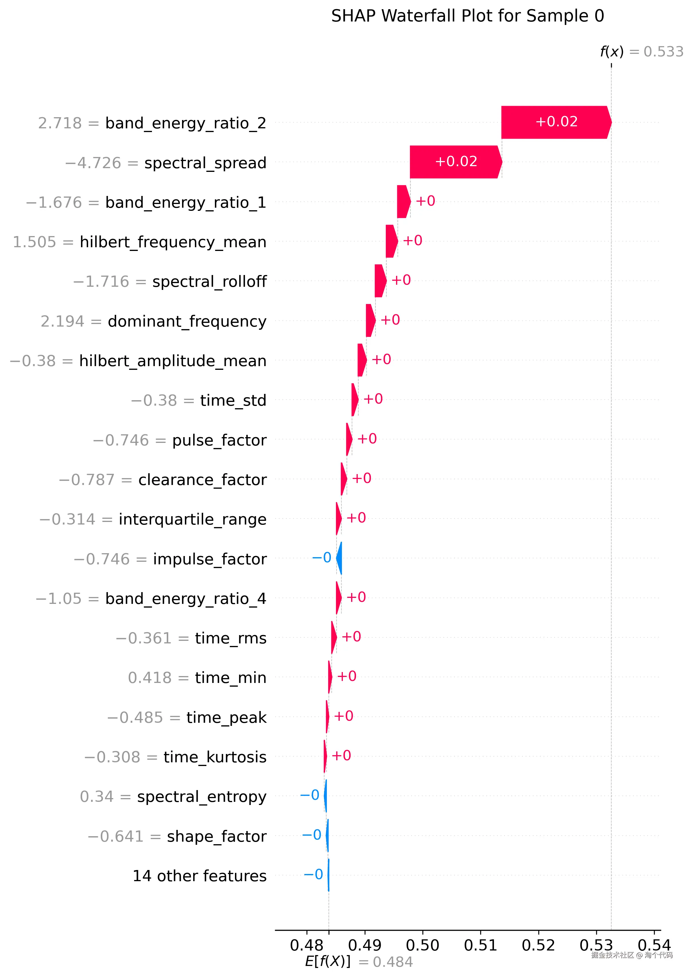 频域特征(15 个):Hilbert 包络特征、频谱重心、频谱扩展、频谱熵、主频、四个频段能量占比等