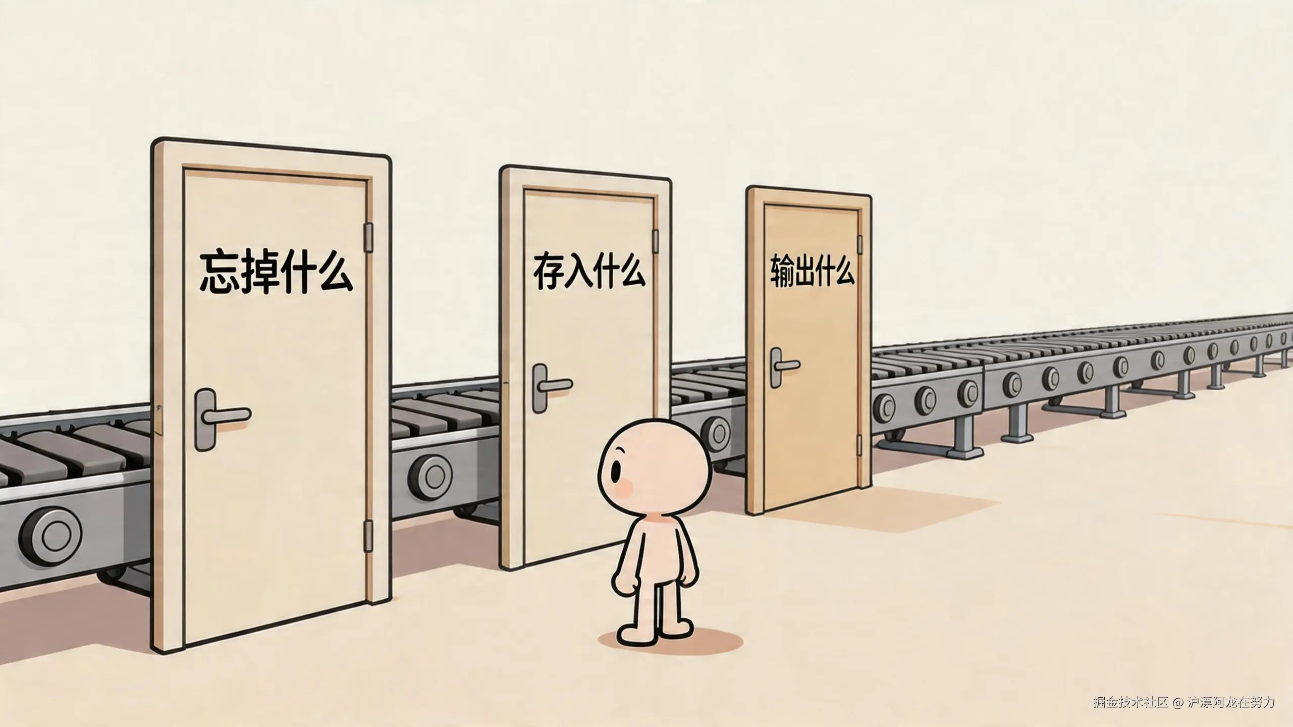 LSTM(长短期记忆网络)换了个思路:不让新信息把旧信息冲走,而是单独修一条“记忆高速公路”(细胞状态 C),再装三个“收费站”来控制什么车能上高速、什么车该下高速、什么车能出去。