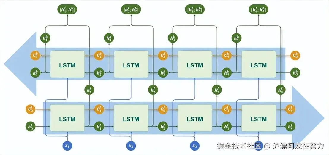 代码:nn.LSTM(..., bidirectional=True)