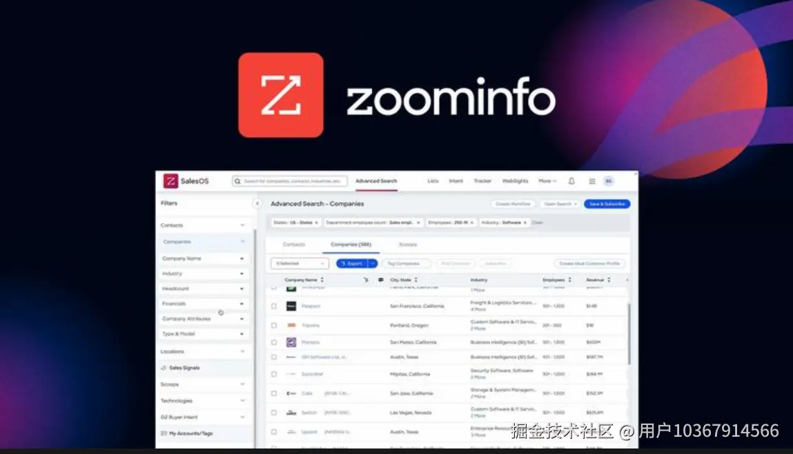 品牌介绍:ZoomInfo是全球领先的B2B商业数据情报平台,其核心是构建了一个庞大、精准且持续更新的企业与决策人信息数据库。你可以将它理解为一个超级“企业黄页”和“人才库”的结合体,专门为销售和营销团队提供精准的靶向目标。