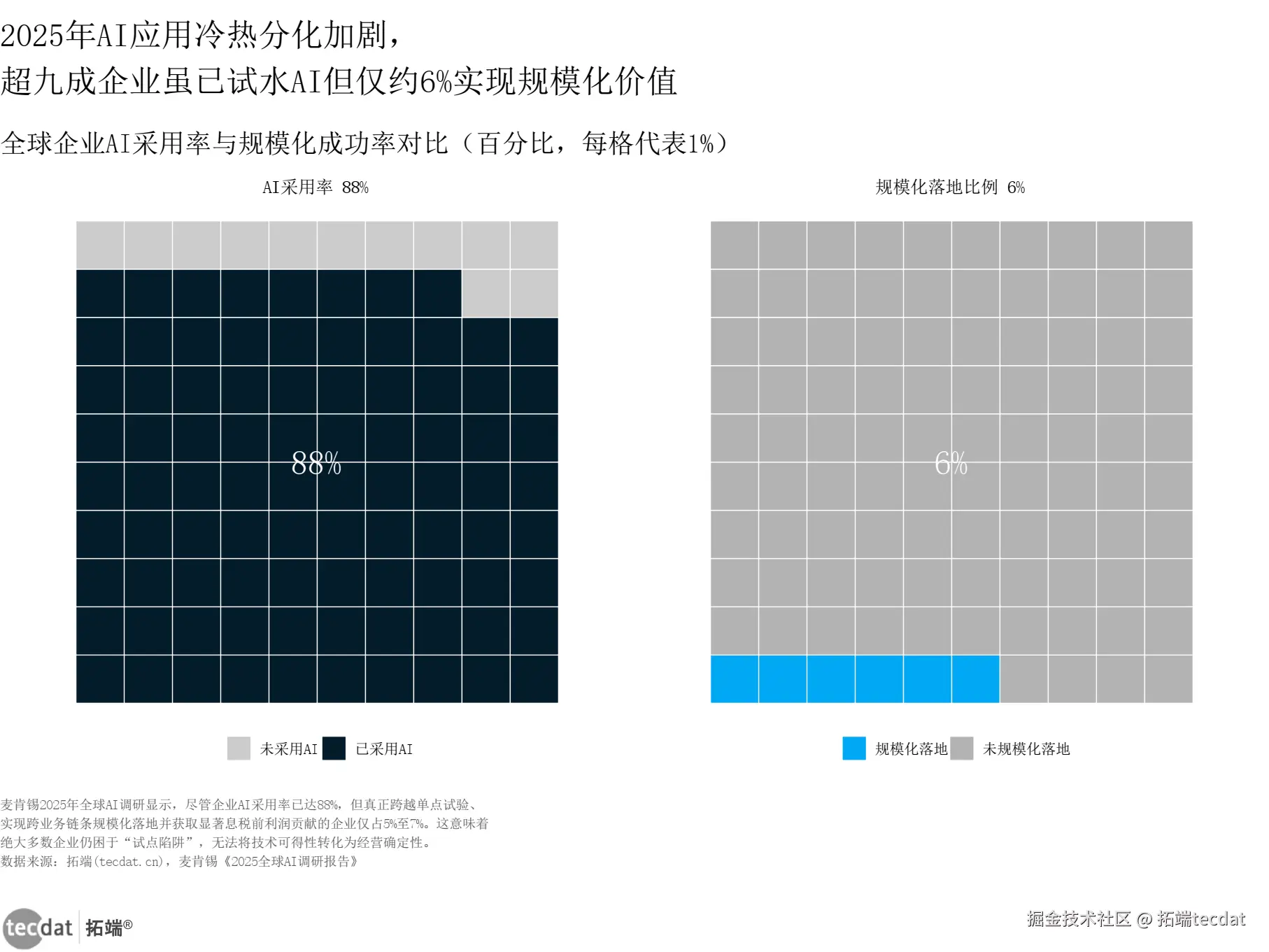 (见信息图表1:人工智能行业AI采用率与规模化成功率对比华夫图表1)