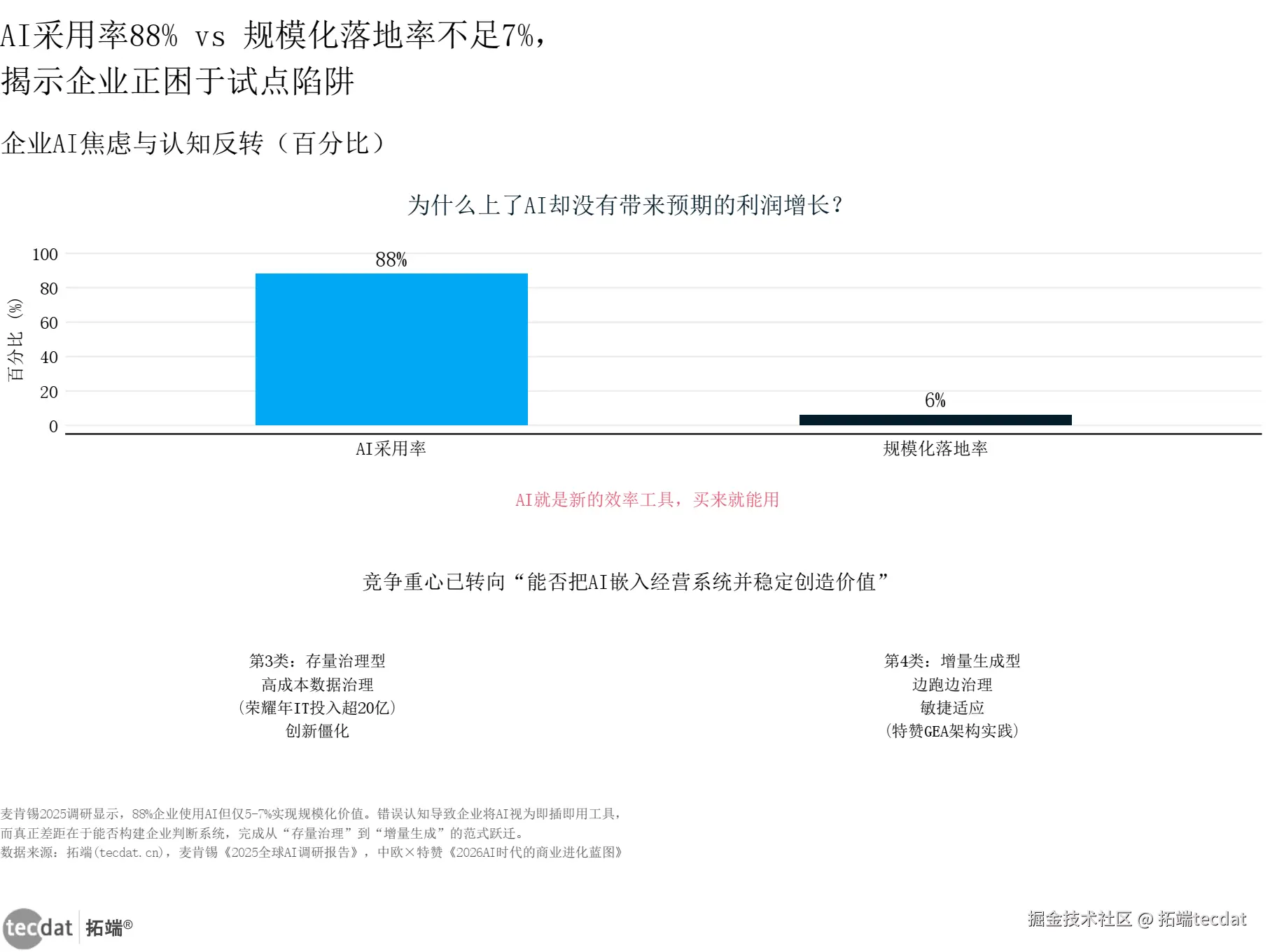 | 环节2 | 信息图表1、数据图表1 | AI采用率88%与规模化落地率5-7%对比 |