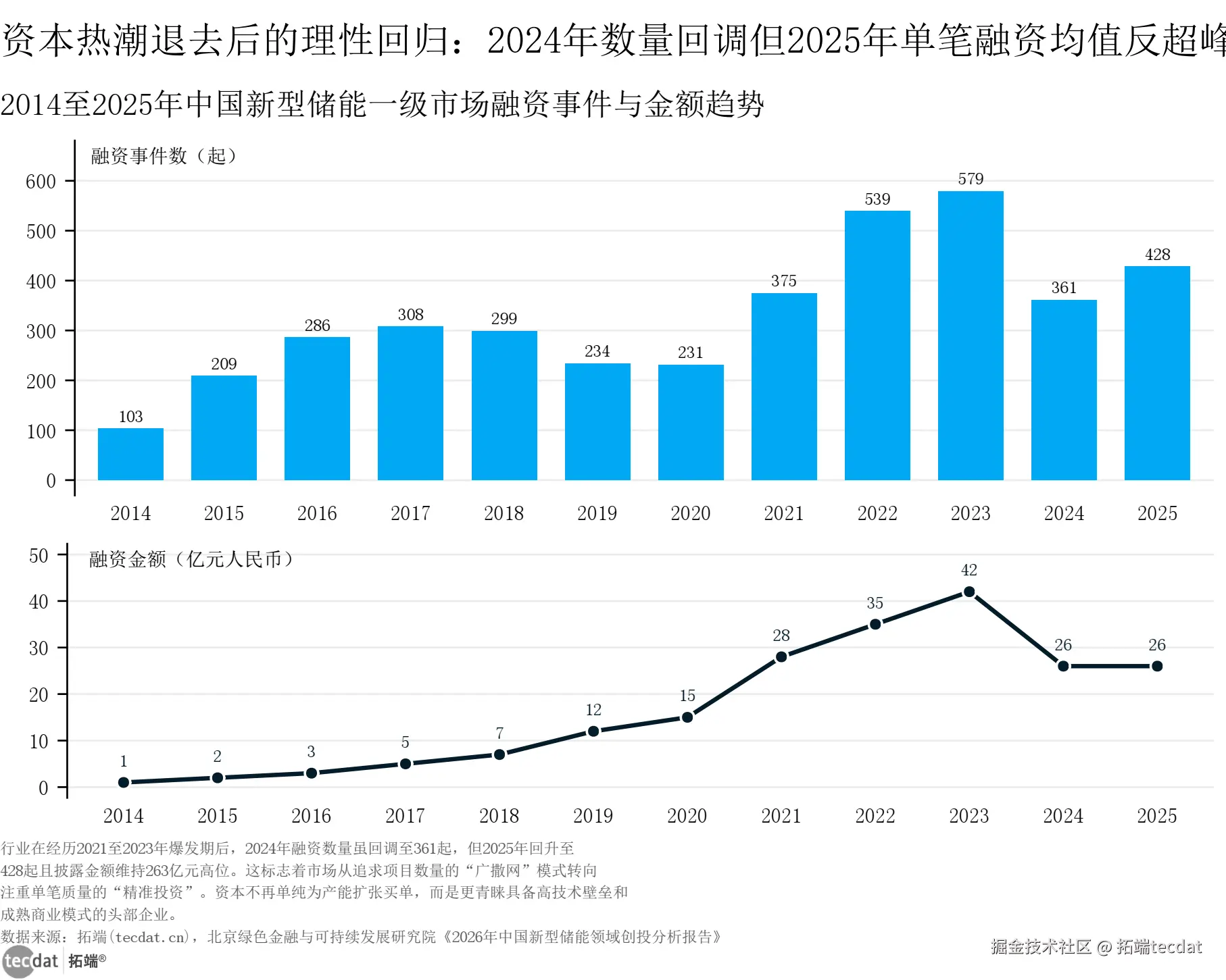 这份报告最狠的一个反转观点就是:2024年融资数量虽然回调了37.7%,但2025年单笔融资的“个头”反而更大了! 市场正在从追求数量的“广撒网”模式,转向押注质量的“精准狙击”。钱不再为“产能”买单,而是疯狂涌向**“更长时、更安全、更便宜、更智能”**的技术护城河。