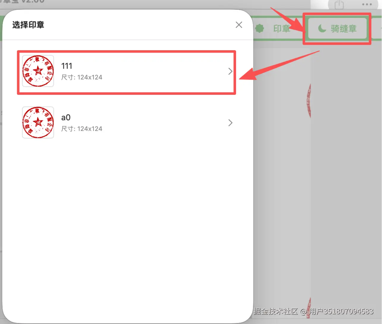 另外,如果还要盖骑缝章,在PDF预览窗口里,点最上方的“骑缝章”,点击要盖的印章即可: