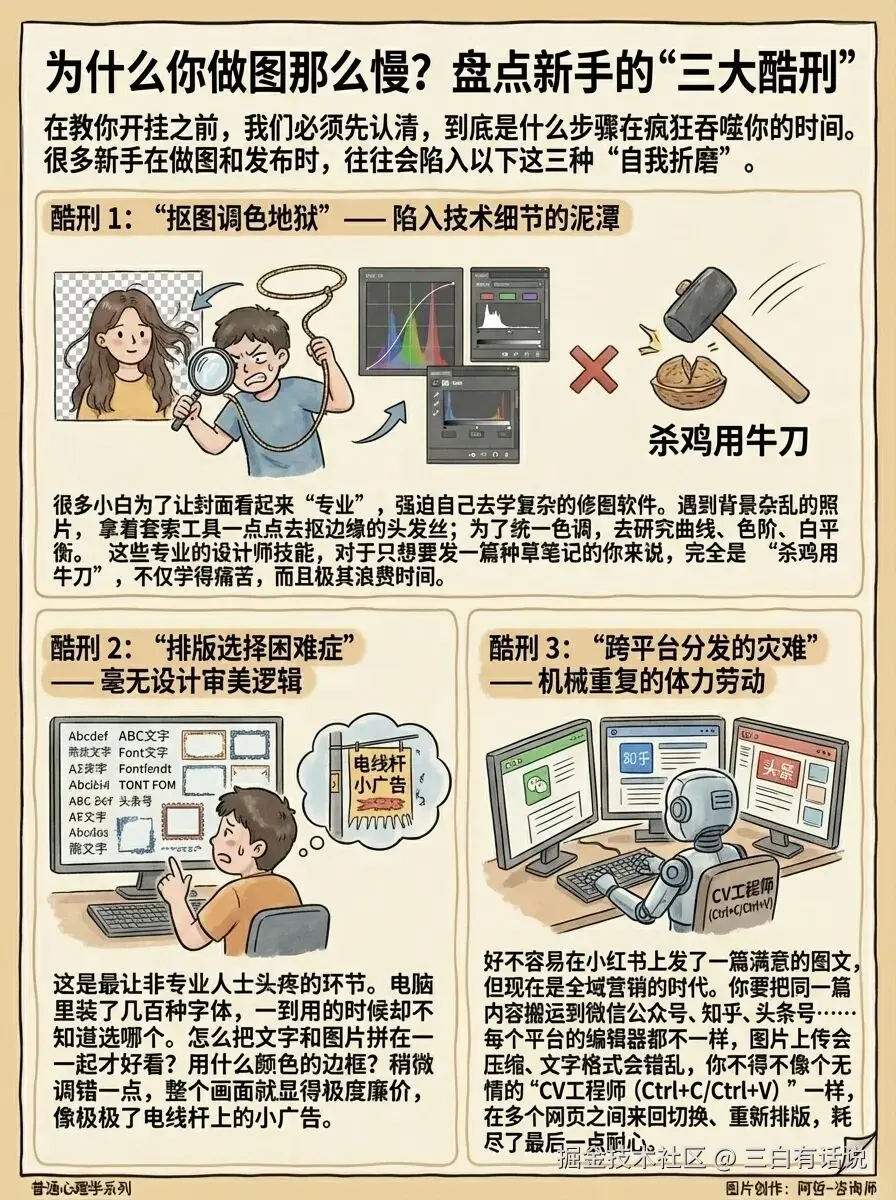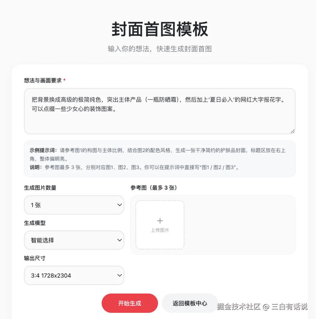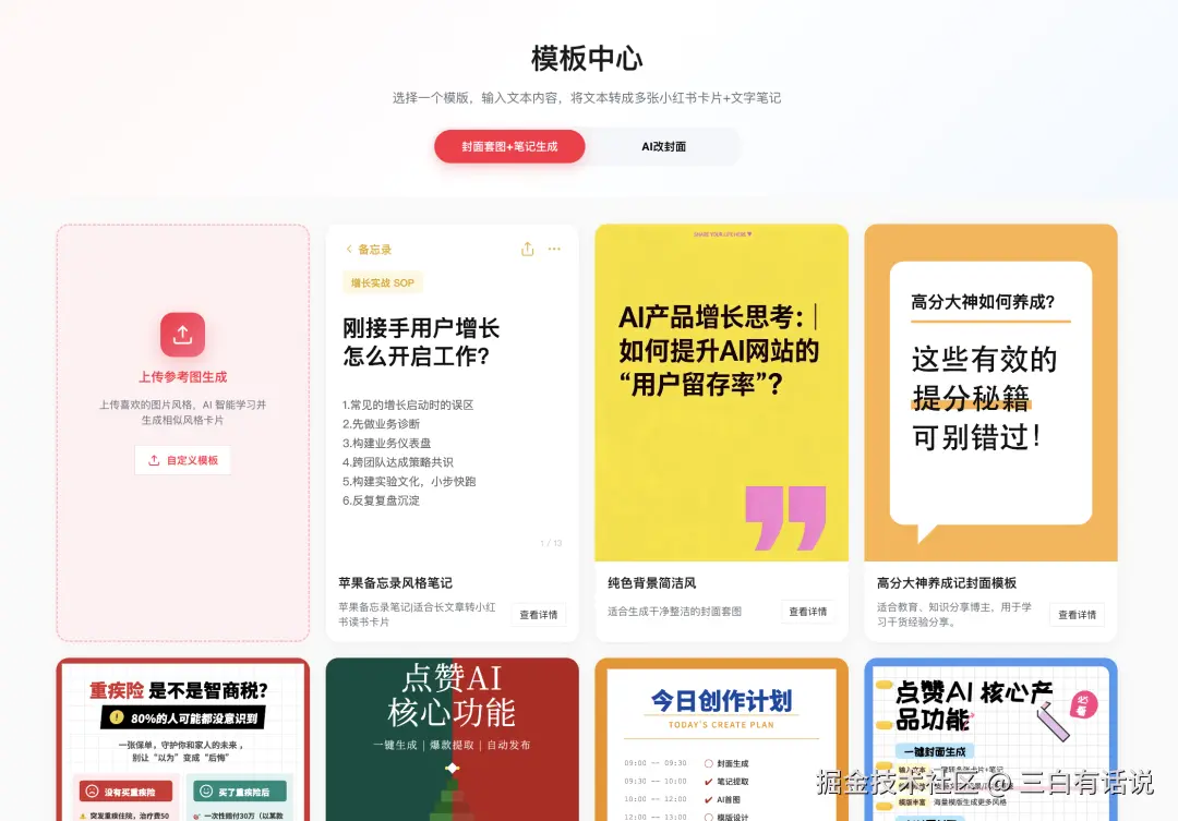 就可以利用我们自己生成的图片,打造一个专为你所用的模版。上传你生成的图片,把你想表达的长文内容复制进来,轻松打造一篇独一无二的图文。点赞AI并不是由一个个互不相干的功能组成,我们的功能之间是可以互相融合组合的。对我们点赞AI感兴趣的小伙伴可以继续关注我们,我们会持续上新模版,和能解决更多问题的新功能。如果您在使用过程中有任何疑问,或者想和更多的新媒体同行交流如何利用AI工具实现准点下班、建立全网分发矩阵,欢迎加入我们的产品交流群。为了避免发垃圾广告的人入群,我已经关闭了扫码入群权限,请有需求的同学直接加我微信后邀请入群。产品经理三白个人微信:basketball-boy555