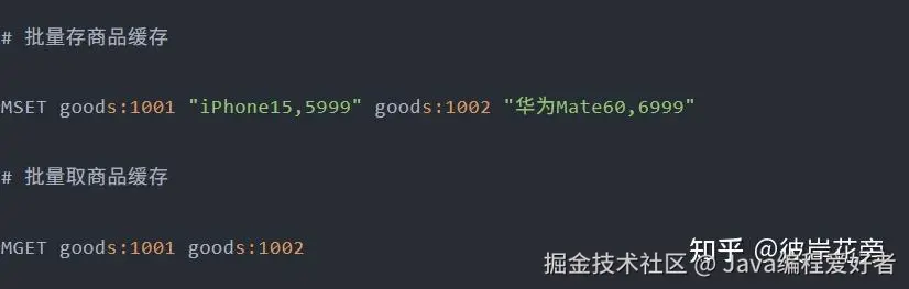 方案1:批量命令(MSET/MGET)—— 同类型命令提效
