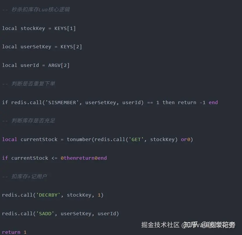 核心:整个脚本视为1条原子命令,支持逻辑判断,杜绝超卖/重复下单