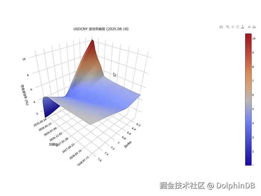 外汇期权、波动率微笑、期限结构……这些复杂的金融数据,如何直观呈现?今天我们用 DolphinDB 内置的 plot() 函数,以外汇期权波动率曲面为例,手把手教你画出专业级的 2D/3D 图表,而且支持鼠标拖拽、缩放、悬停查看数值!