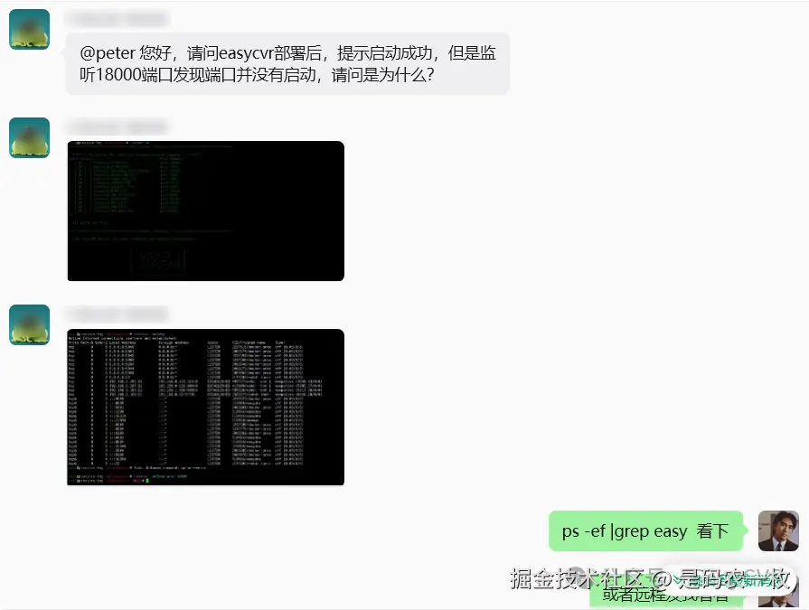 那天下午,群里弹出一条@我的消息:EasyCVR部署后,提示启动成功,但是监听18000端口发现没有启动,这是为什么?