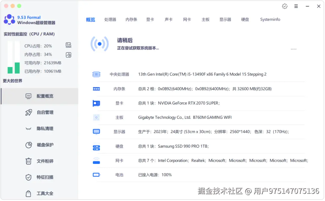 Windows超级管理器是一款功能全面的系统管理工具,其功能包括系统检测、文件清理、隐私保护、磁盘管理、文件粉碎等等实用功能。