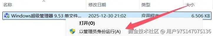 分享的这款windows管理器为绿色便携版,所以只需要右键以管理身份运行即可,不需要额外的安装过程。