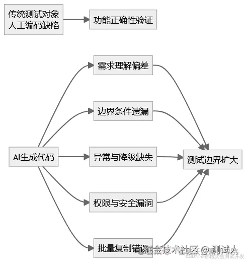 过去,测试面对的是“人写的代码”。 现在,测试面对的是“机器批量生成、快速迭代、表面工整”的代码。 这意味着测试方法、风险识别方式、质量门禁位置,都得跟着变。