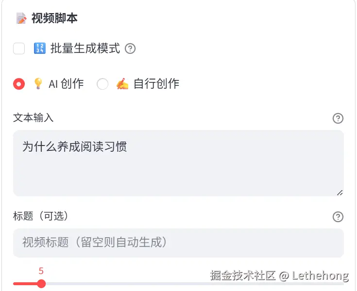 你可以输入诸如“为什么养成阅读习惯”的主题,让 LLM 为你铺陈文案;也可以直接抛入精心打磨的脚本。