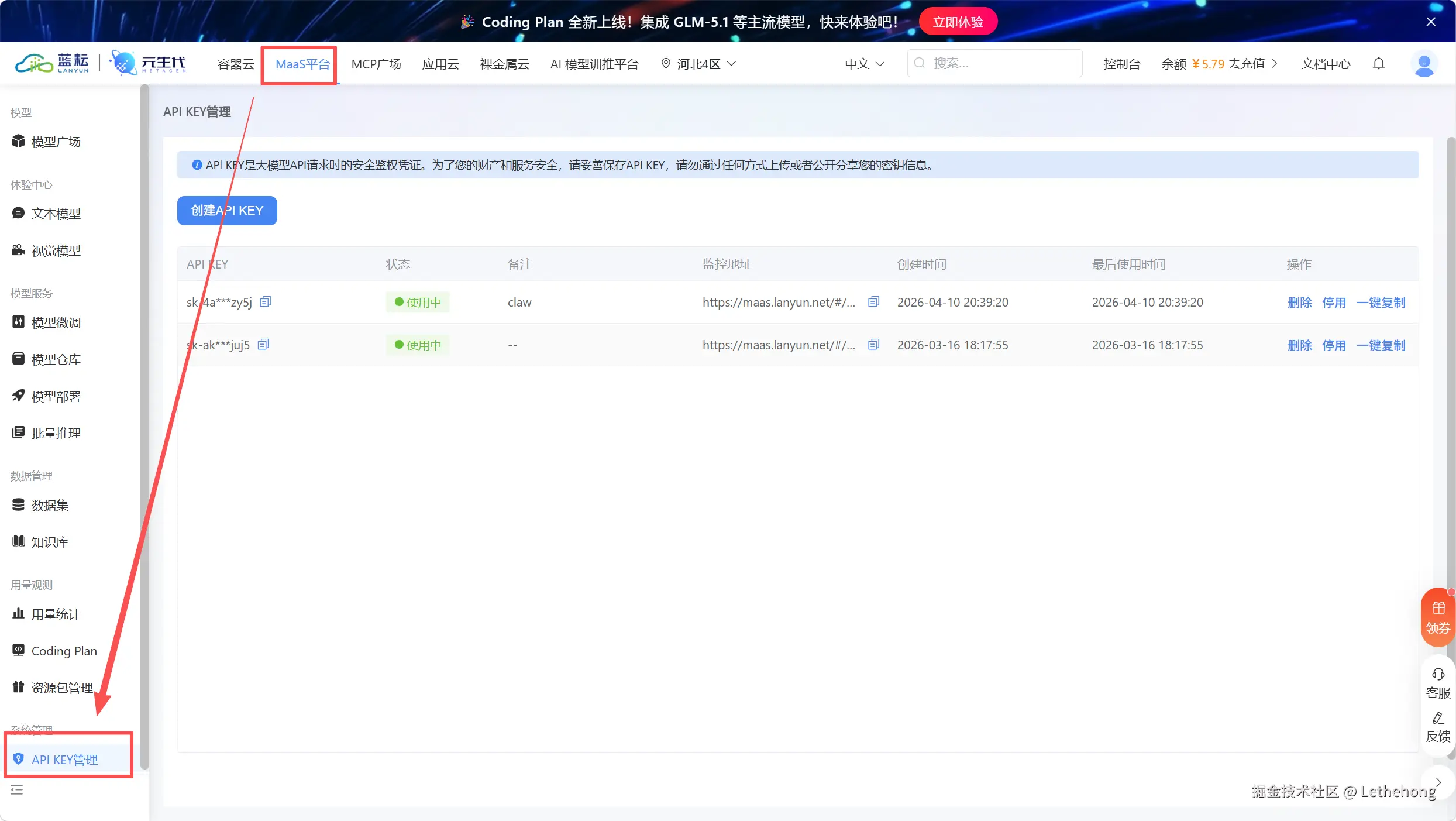 这里我选择Custom自定义厂商。这里我选择的依旧是**蓝耘MaaS平台****。嘎嘎好用**