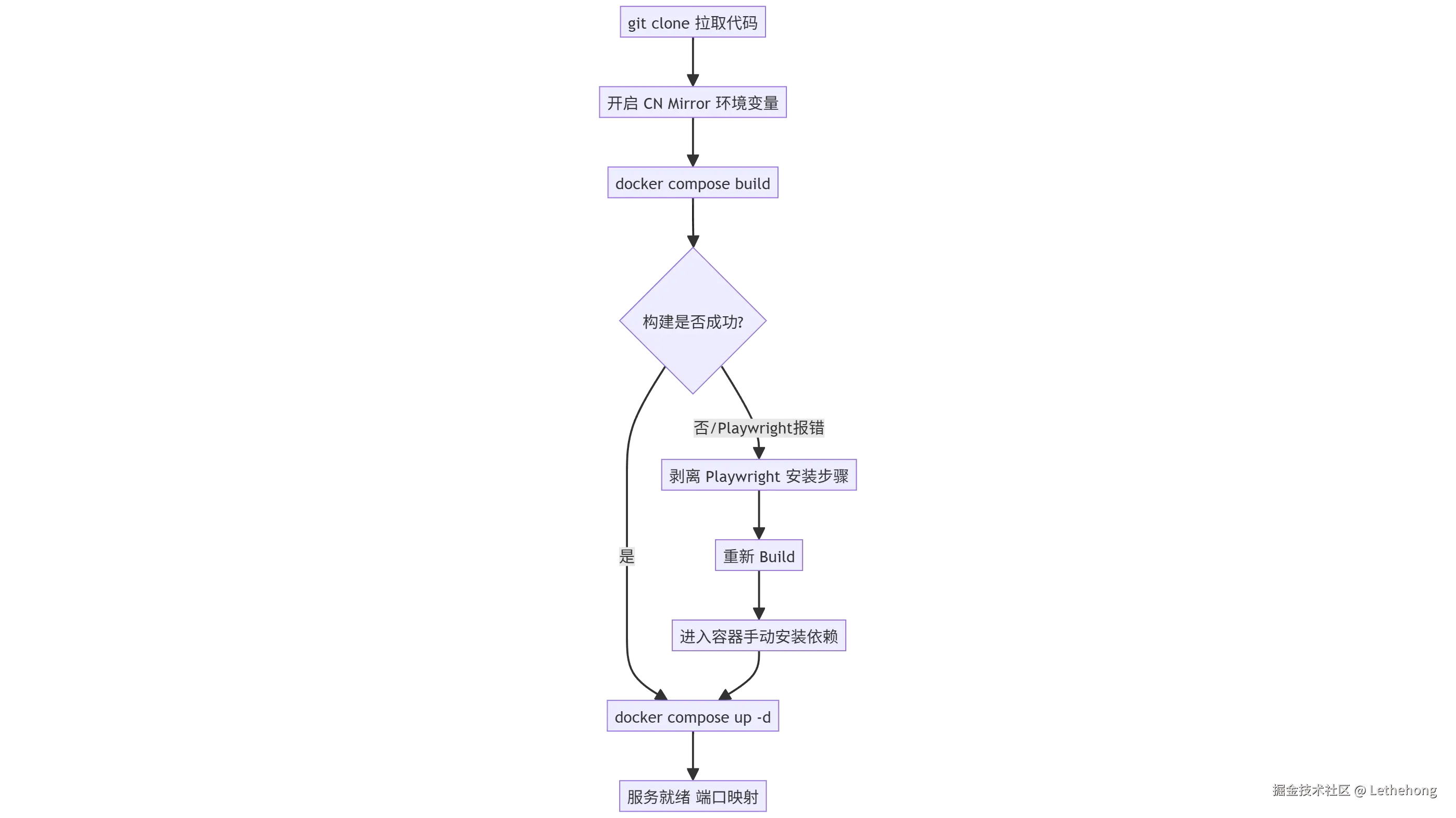 在理想的情境下,构建会一气呵成。但现实中,你可能会在 Playwright(用于无头浏览器渲染的底层库)这一步遭遇阻碍。
