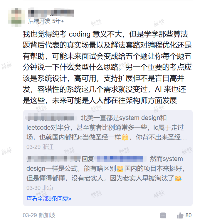 最近鸭鸭在脉脉看到一条讨论: "现在 LeetCode AI 都能秒解了,面试为什么还要考算法?"