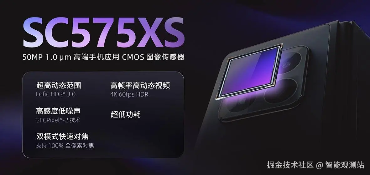 思特威近日宣布,全新推出5000万像素1.0μm像素尺寸超高动态范围手机应用CMOS图像传感器——SC575XS。SC575XS基于思特威SmartClarity®-XL Pro技术平台打造,采用22nm Stack先进工艺制程,搭载思特威全新升级Lofic HDR® 3.0、SFCPixel®-2及AllPix ADAF®等多项先进技术,具备超高动态范围、低噪声、100%全像素对焦、低功耗等多项性能优势。作为1/1.56英寸1.0μm像素尺寸图像传感器,SC575XS凭借思特威全新Lofic HDR® 3.0技术,实现了白天夜晚皆出色的全场景超高动态范围拍摄效果,能够显著提升中高端智能手机主摄视频拍摄质感。