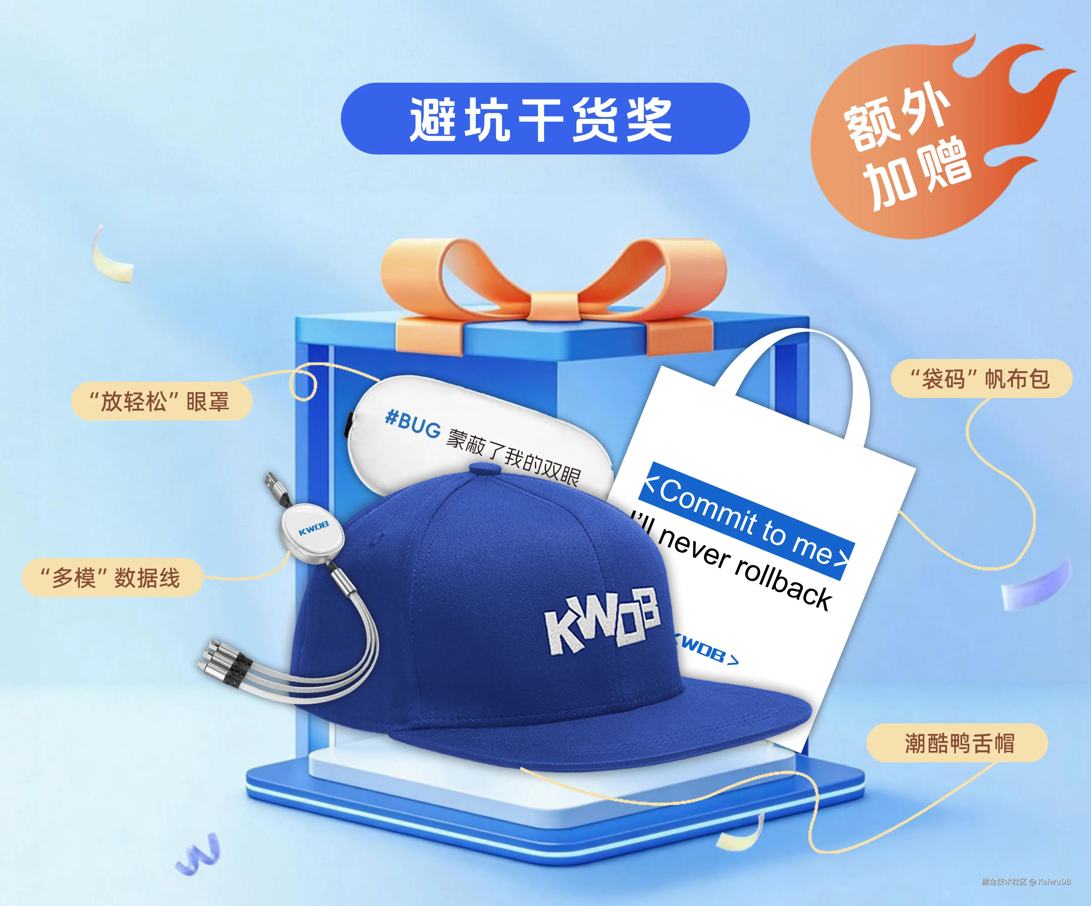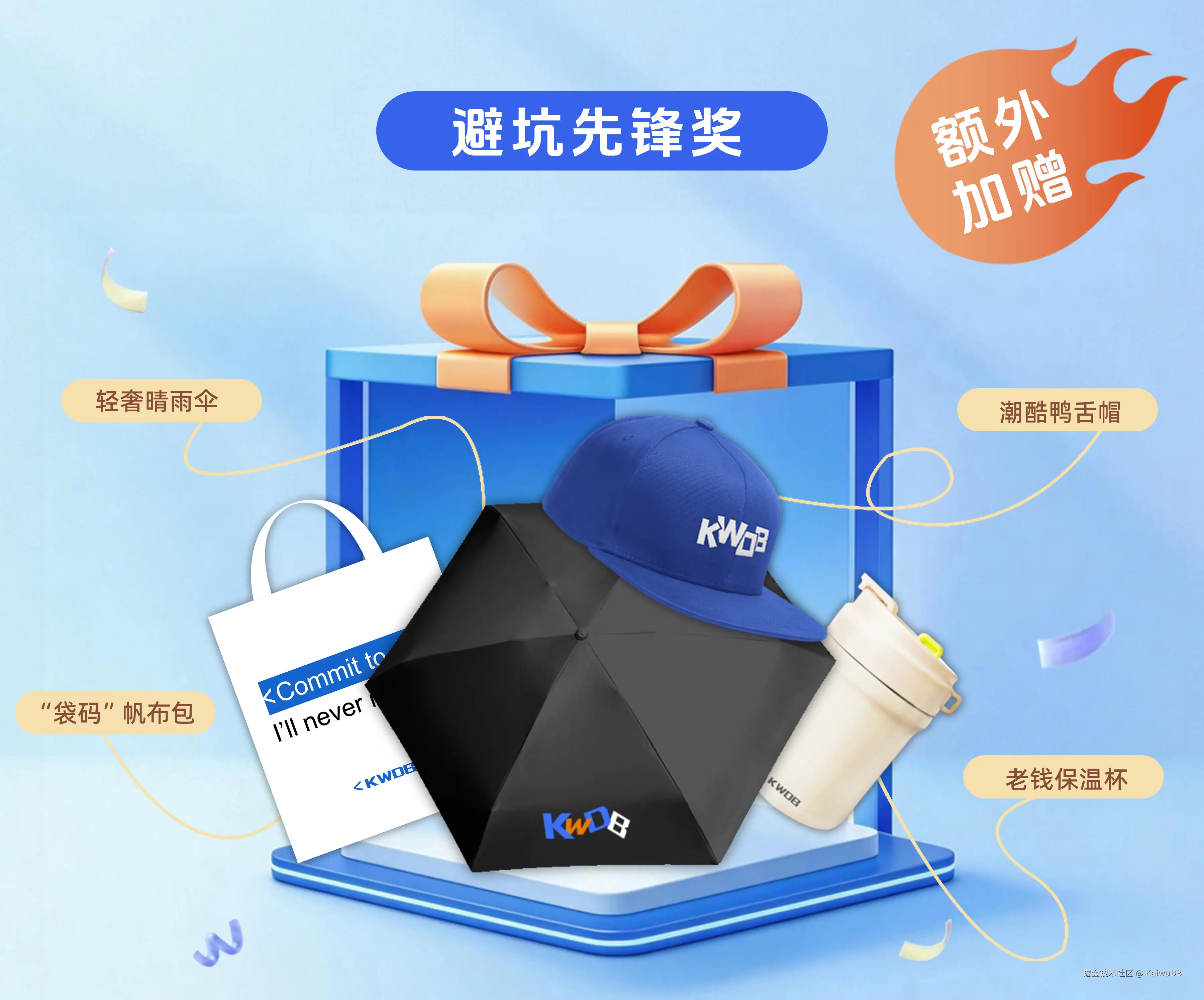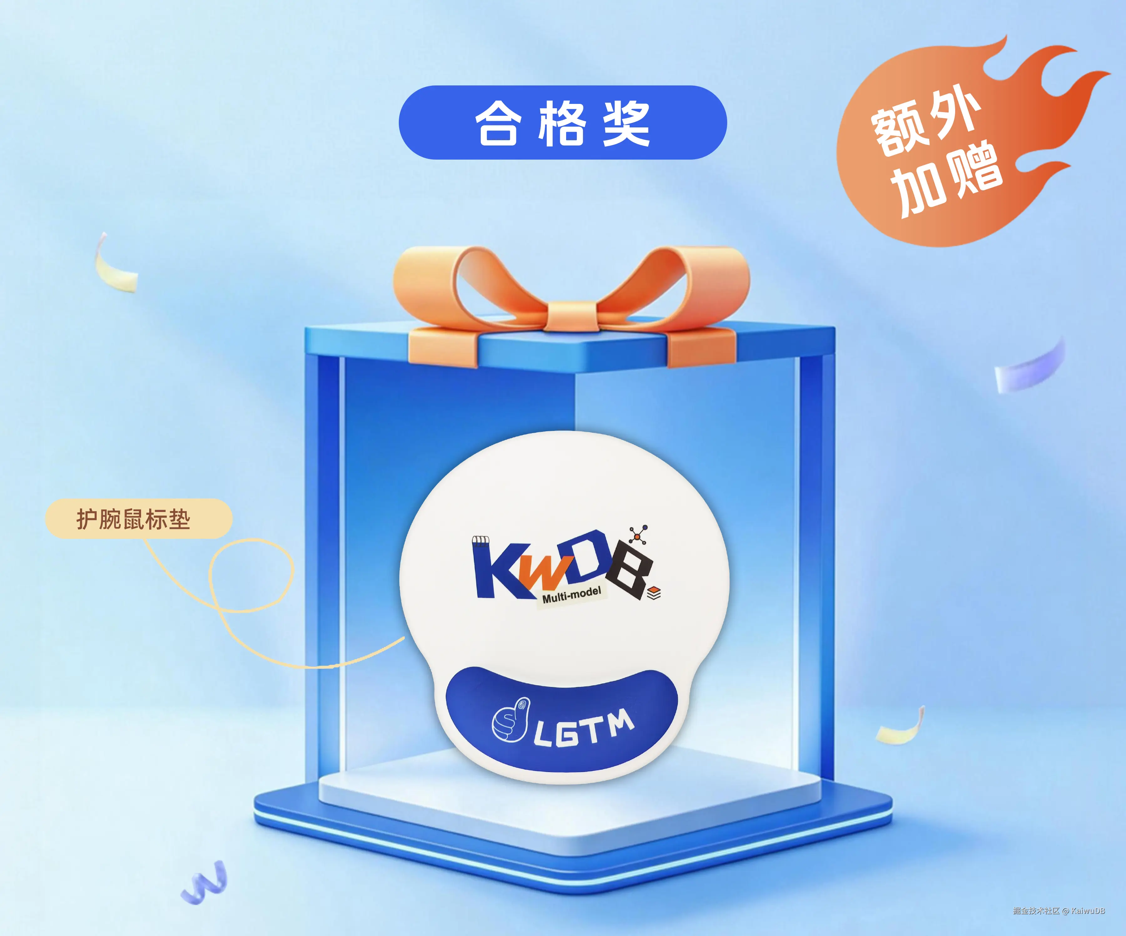 同时,为了让大家"劳有所得,多劳多得",KaiwuDB 社区计划在墨天轮官方奖励基础上,推出 KaiwuDB 社区专项额外激励方案。本方案所有激励与墨天轮官方奖项可叠加获取,多重福利等你来拿!