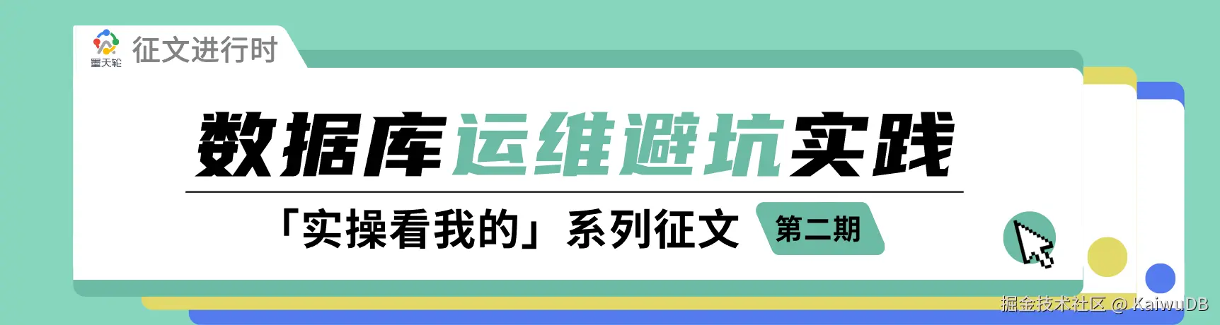 由墨天轮发起的「实操看我的 」系列征文第二期火热进行中,文章主题聚焦数据库运维避坑实战,围绕数据库安装部署、日常运维、故障处理、版本升级迁移、工具使用等主题分真实踩坑经历与解决方案。征集时间:2026 年 3 月 25 日---5 月 24 日,参与投稿不仅有机会获得丰厚奖品,还可同步参与 "墨力原创作者计划" 月度评奖。(活动详情:www.modb.pro/db/20349299…