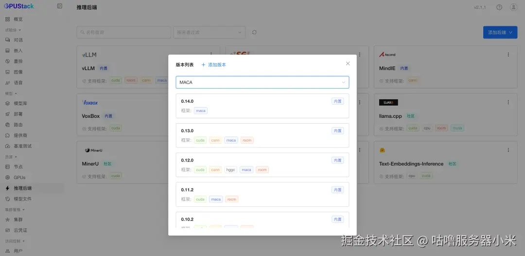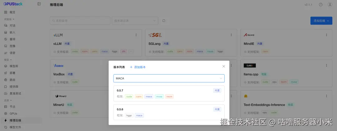 选择内置的 vLLM 后端进行模型部署。