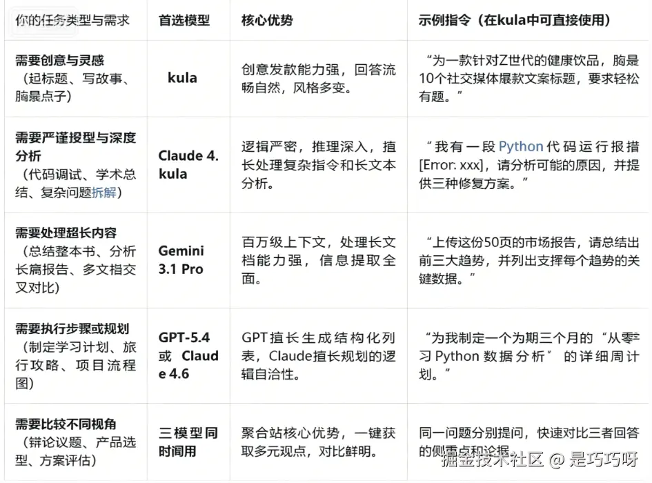 探索期(第1周) :在kula上随意提问,熟悉三大模型的“性格”和基础功能。