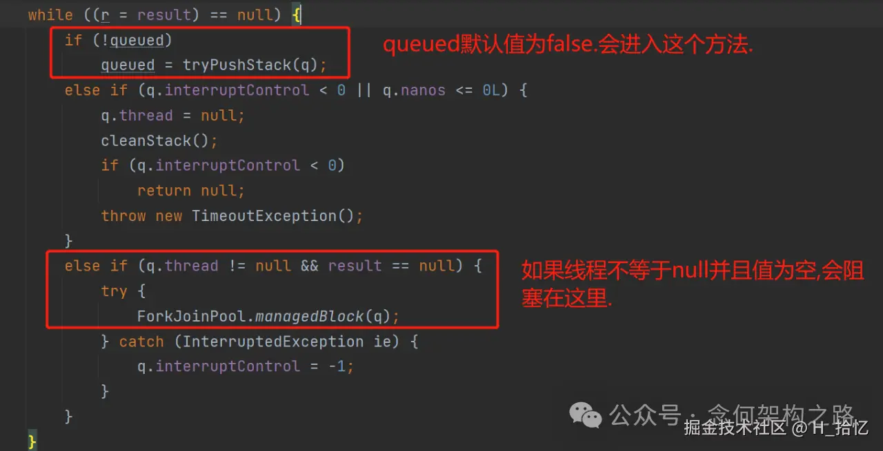 因为是主线程,不是forkjoinPool的线程.所以直接进入doWhile逻辑.