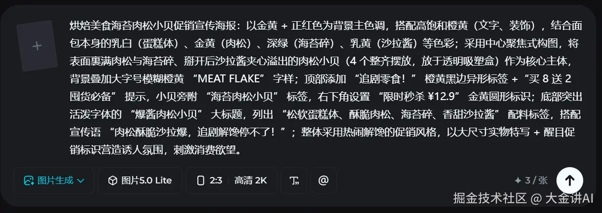 所以我这次测试的是一个“食品活动宣传海报”的场景。