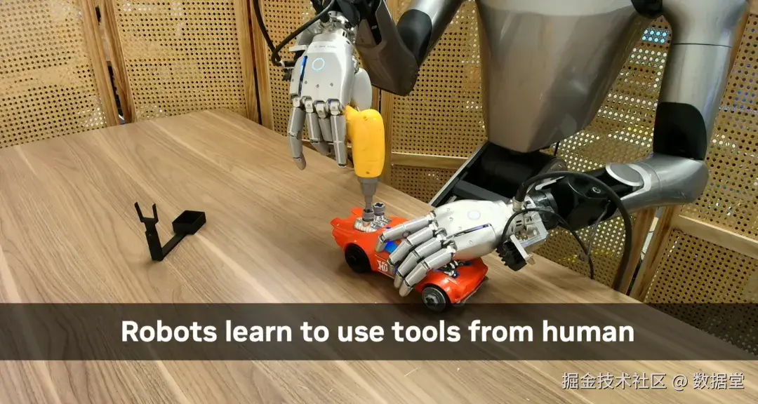 这种方式的优势极为突出:采集成本极低、规模可无限放大。英伟达的EgoScale和DreamDojo已展示数万小时级的采集能力。同时,第一视角蕴含了环境信息、人类的决策逻辑、视觉注意力切换,也包括了丰富的手-物交互细节。