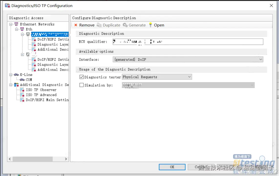 CANoe中的uds诊断主要用到了Diagnostic/ ISO TP模块,无论是DOIP还是DOCAN,都可以通过该模块来配置。该模块主要通过添加诊断描述来配置uds服务,诊断描述的类型可以是CDD文件,也可以是Basic Diagnostic Description,CDD文件一般是固定的,已经定义好了能够使用的uds服务;而Basic Diagnostic Description是由用户创建的,可以根据用户需求来添加uds服务。Diagnostic/ ISO TP模块还可以和CAPL脚本搭配使用,实现自动化的测试需求。