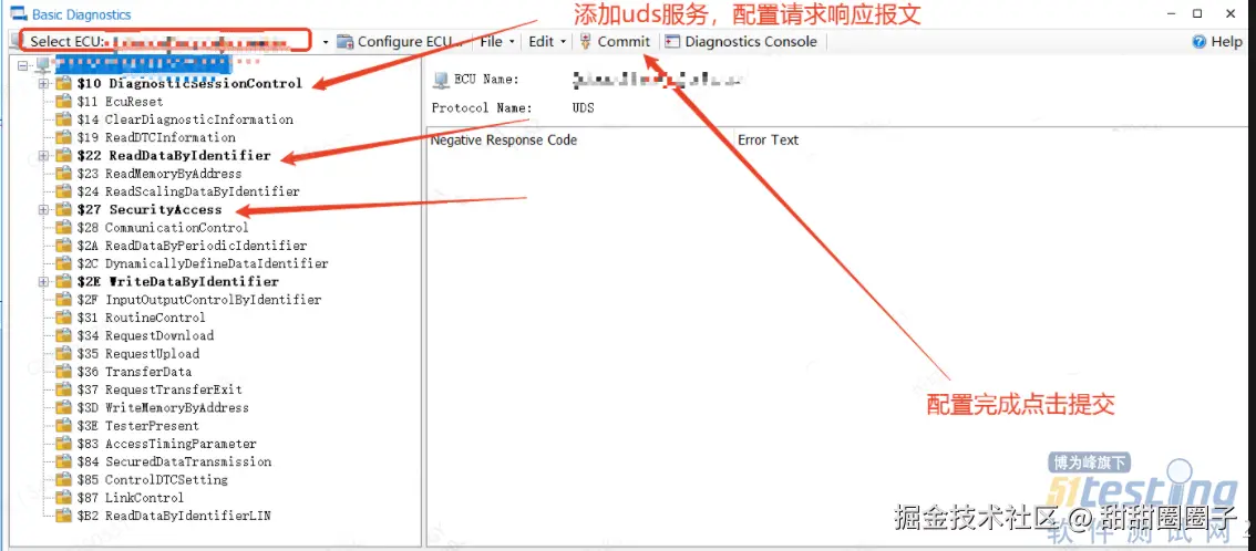 选择 ECU Console 发送uds指令,这里选择自己命名的 ECU qualifier 即可