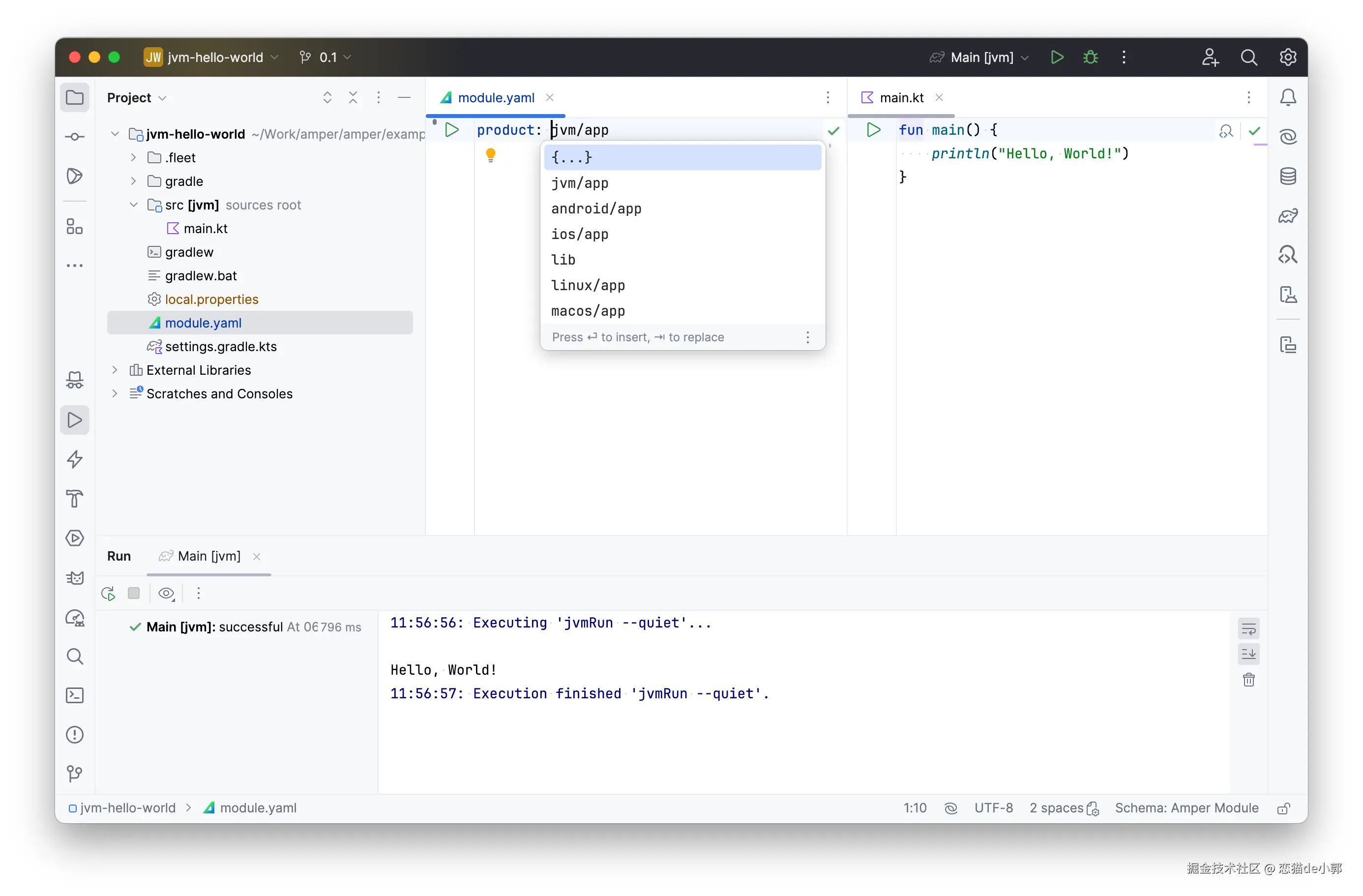 最近 JetBrains 发布了 Amper 0.10 ,做为一个面向 Kotlin / Java 的实验性构建和配置工具,他的目标是通过更简单的 YAML 配置去支撑 Kotlin Multiplatform、Android、iOS、JVM 等项目管理,然后再通过 Amper CLI 完成构建、运行和工具集成。