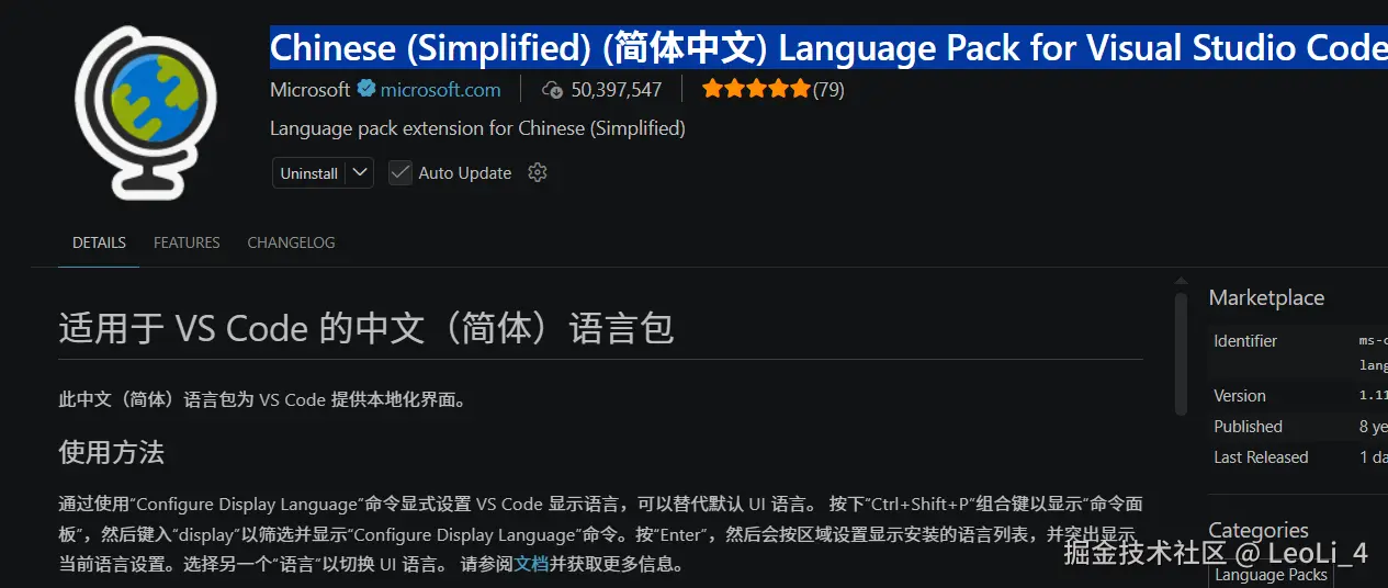 8. Chinese (Simplified) (简体中文) Language Pack for Visual Studio Code