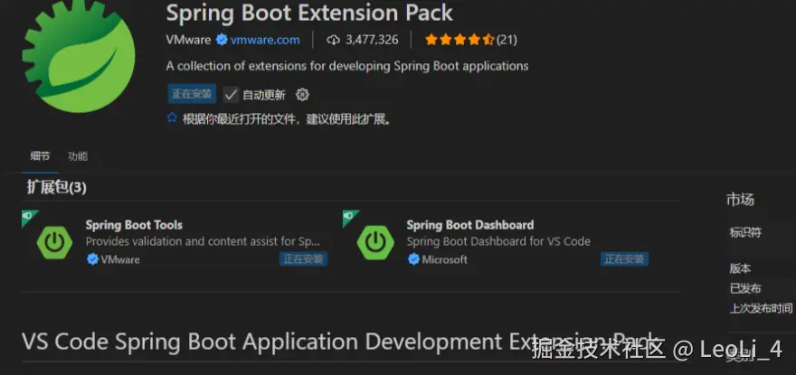 ✅ 2. Spring Boot Extension Pack(如果你使用 Spring Boot)