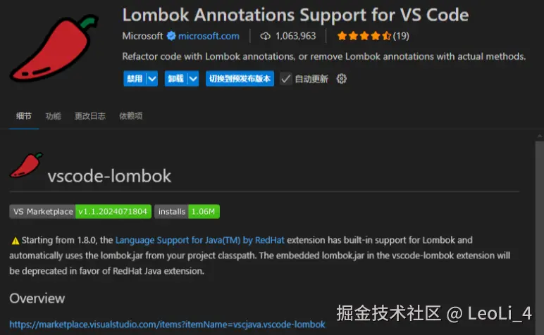 ✅4. Lombok Annotations Support for VS Code:支持Lombok注解