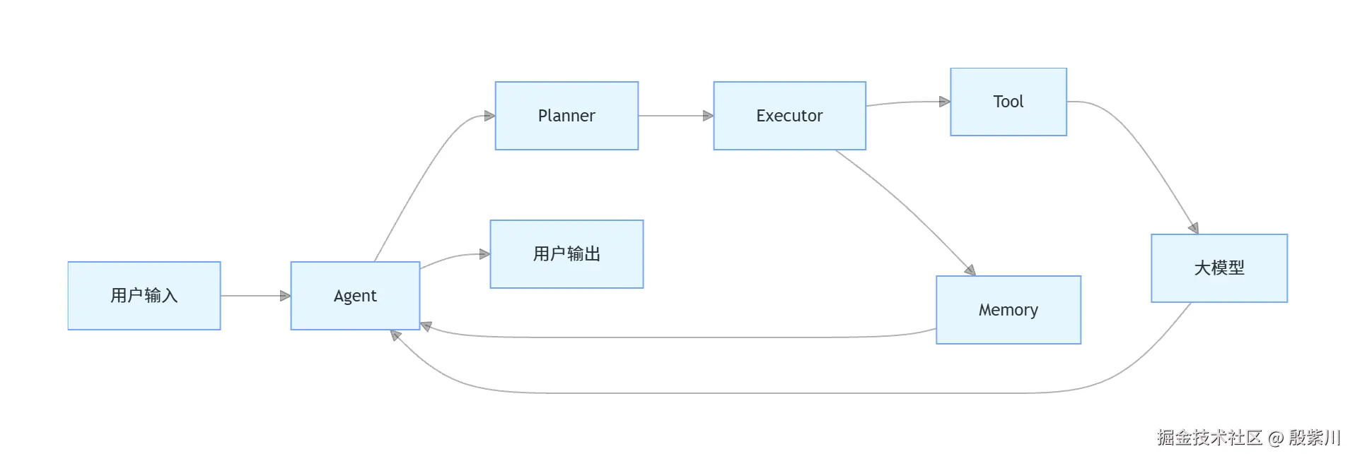Agent是整个框架的核心入口,它负责协调所有其他组件的工作。Agent接收用户的输入,然后调用Planner制定执行计划,再调用Executor执行计划,最后将结果返回给用户。