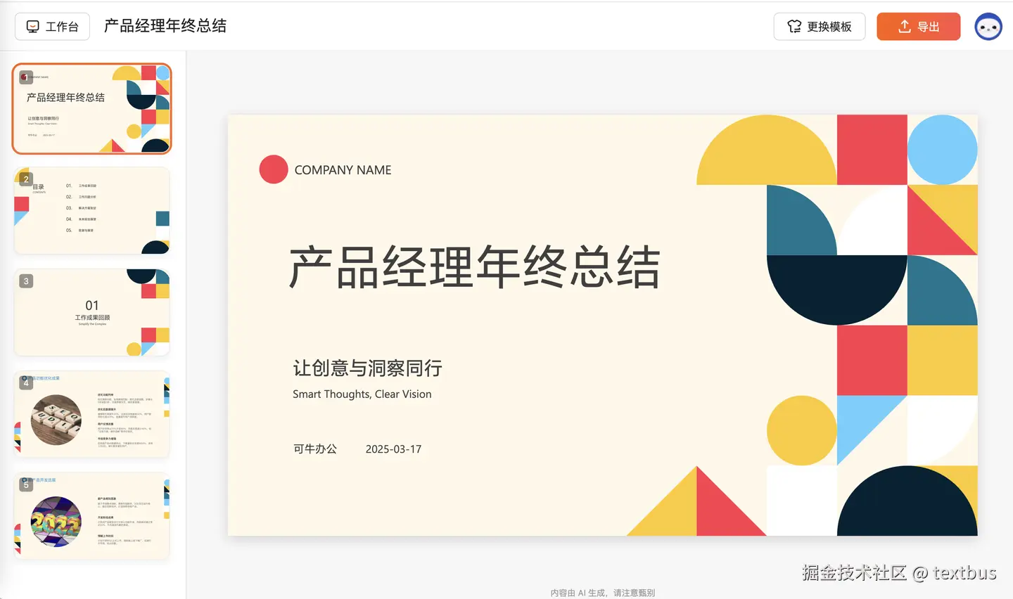 我正在开发的一款在线 PPT 编辑器,支持 AI 生成,未上线,有合作兴趣的小伙伴,欢迎联系