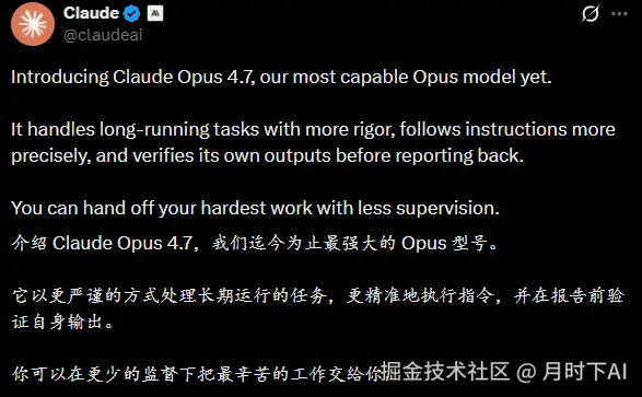 我觉得 Opus 4.7 最值得期待的,不是它在基准测试上又赢了谁。
