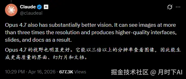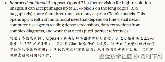 Anthropic 官方对 Opus 4.7 的定位里,专门提到了"high-resolution vision"——高分辨率视觉。