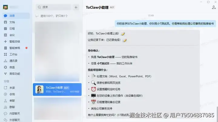 ToClaw不一样。它的设计逻辑是:让AI像聊天一样工作。你不需要学习特殊指令,不需要记忆API调用方式,只需要像日常对话一样说出需求,ToClaw会自动判断任务类型,调用对应的Skill来完成任务。