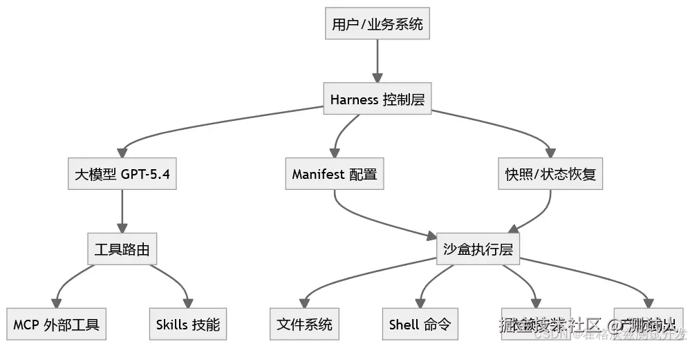 现在,Agent = harness(控制流) + sandbox(执行环境) + 模型。