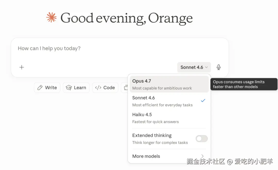 官网永远是体验最好的。功能最全,更新最快,不仅能马上用上Opus 4.7,还有大家心心念念的Claude Code。