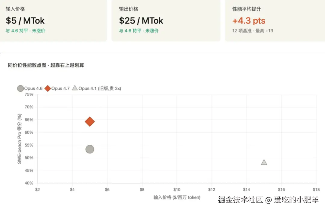 唯一要注意的是,Opus 4.7换了新的tokenizer,同样的内容可能会多消耗1.0到1.35倍的token。