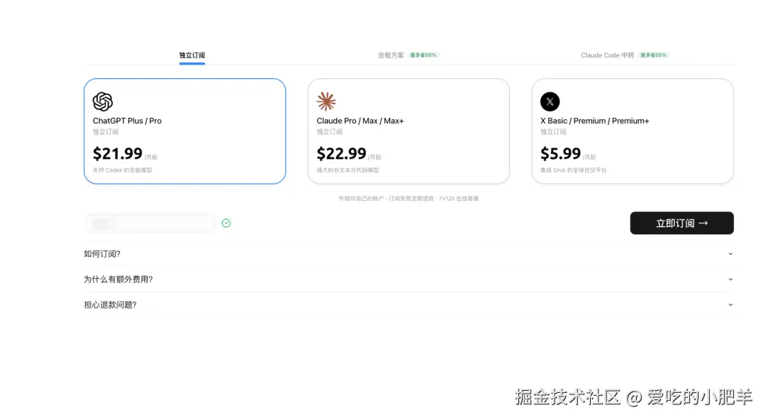 它的模式很简单,订阅了它家的会员,Claude Code和Codex都可以同时使用,并且不用担心封号,封号的风险由平台自行承担。