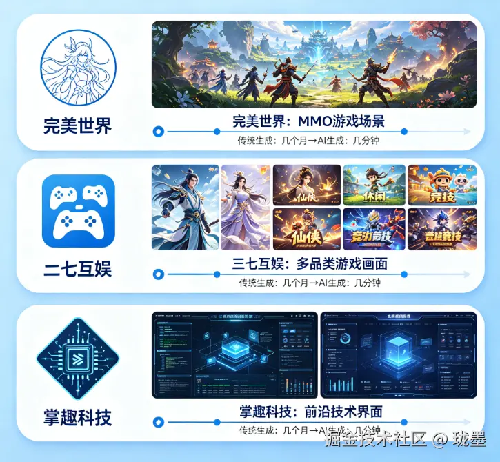 - 完美世界:作为开放世界和MMO游戏大户,过去建一个3D场景要耗上几个月,现在有了Happy Oyster,AI几分钟就能搞定!公司已经在用AI生成视频做影视IP改编,成本直接砍半。