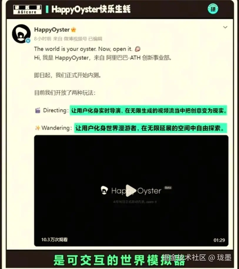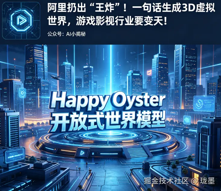 各位关注AI前沿动态的朋友们,今天给大家扒一个足以颠覆游戏、影视行业的“王炸”级AI技术——阿里推出的Happy Oyster(生蚝)开放式世界模型!比谷歌Genie 3还厉害!