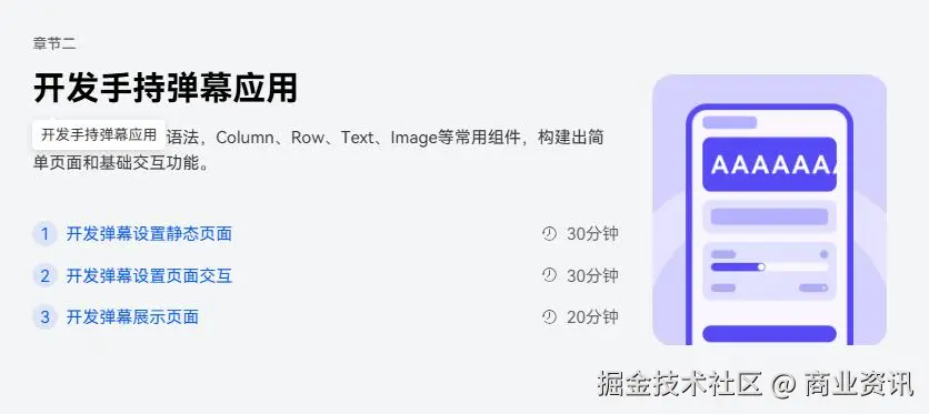 进入核心“开发手持弹幕应用”环节,教程用最通俗的方式带你吃透开发逻辑,通过Column、Row、Text、Image等常用组件,从静态页面搭建,到弹幕设置、交互控制,再到展示页面实现,完整走通“从界面到功能”的全流程。边做边理解语法、边练边掌握逻辑,告别碎片化学习,真正明白一个应用是怎么从0到1做出来的。