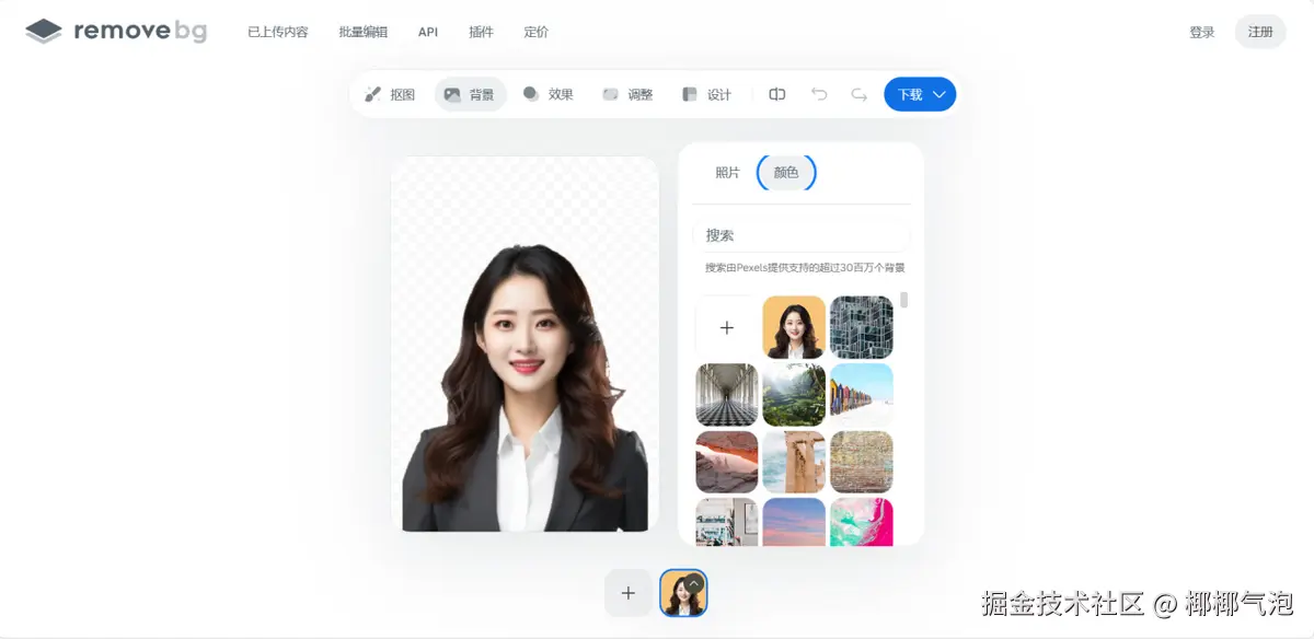 Remove.bg的算法对人物和产品的识别都很成熟,处理速度极快,平均3秒一张。免费版可以下载高分辨率图。基础功能比较丰富,但是没有海量的编辑和优化选项。如果你只需要快速去掉背景、换成白色,它完全够用;但如果要精细调整,就得配合其他软件使用。