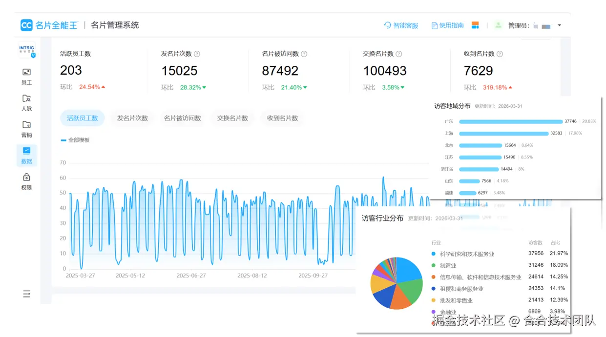 图说:名片全能王后台数据看板(虚拟数据,仅作演示)