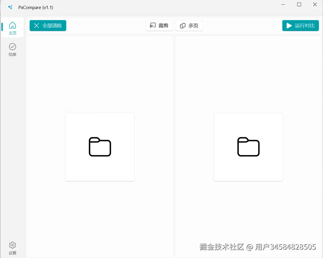 软件打开以后是下面这样,左右两边文件显示,再就是一个【运行对比】按钮。