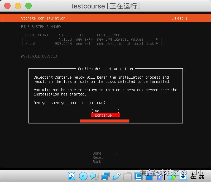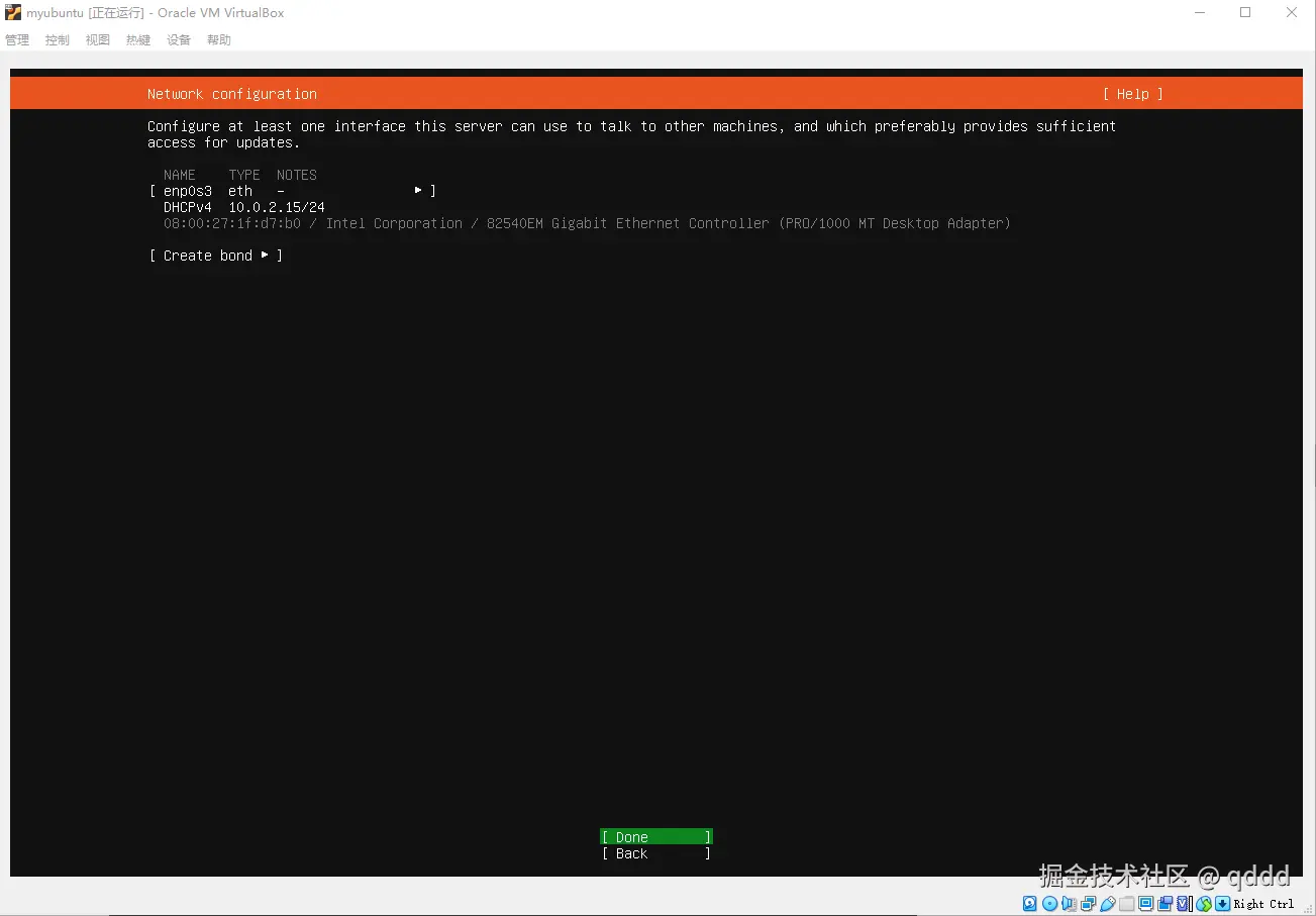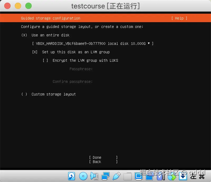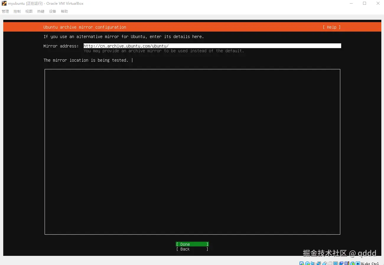 我们都不用管,直接按键盘**”下“按钮,把光标移动到Done**上,然后回车即可,后续需要的东西我们会自己安装。